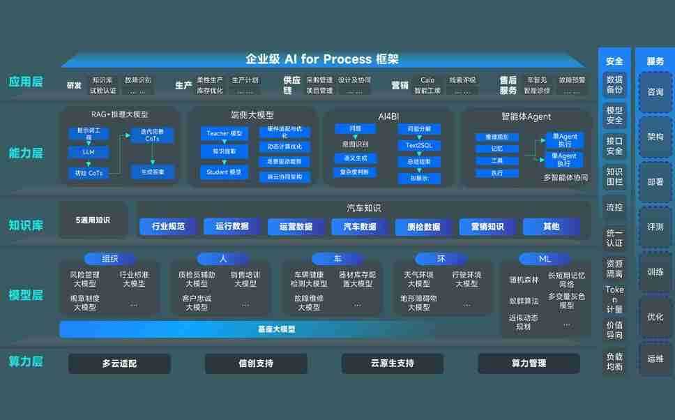 端到端的一站式AI工作空间深度融合了从企业战略规划到日常经营的全流程业务板块,,,,定向解决车企内部领域多、、、部门多、、、链条长、、场景碎片化等难题,,支持车企快速构建以AI为核心的生产力写作体系,,,,实现任务执行与AI能力的无缝集成与交互